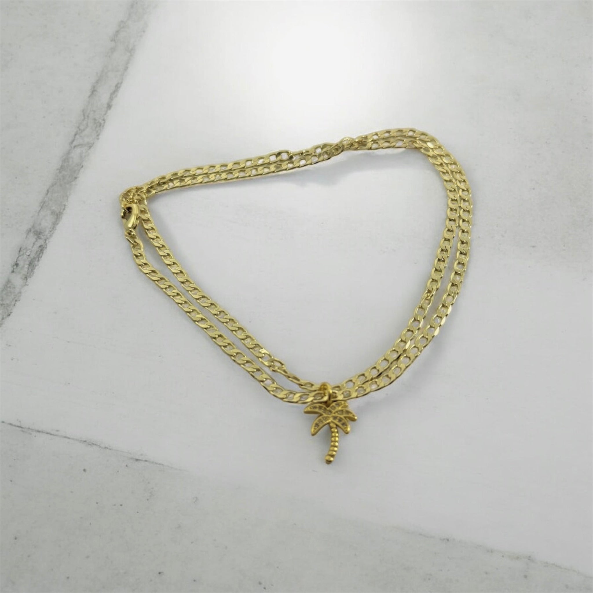 Add an elegant touch to any outfit with the Palm Charmy Anklet. Made with 18k gold plated brass, this anklet is adorned with a delicate palm charm. Elevate your style...