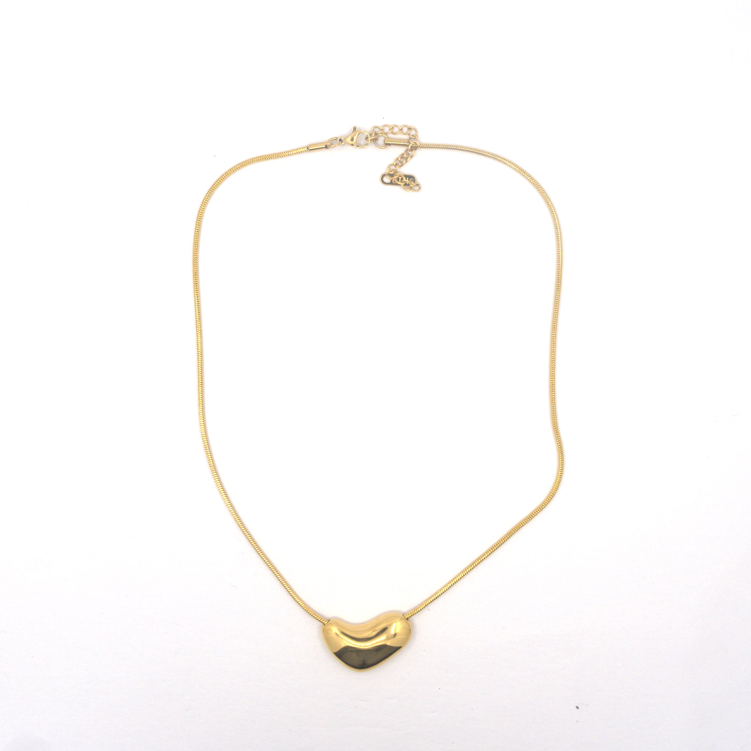 18k gold plated our Molten Heart Necklace captures the beauty of simplicity with a modern, sculpted touch. Designed with a 16-inch gold snake chain and a 30 mm puffed heart...