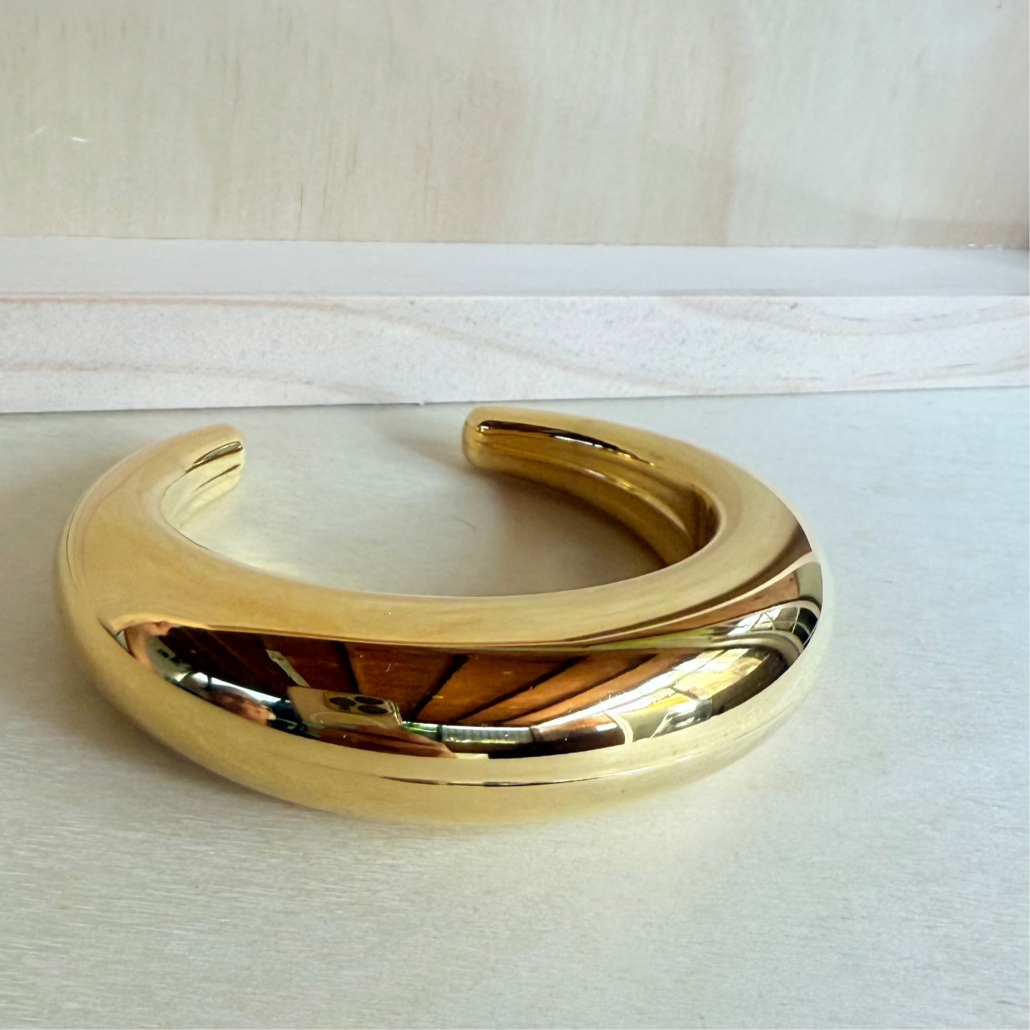 Sleek, sculptural, and unapologetically bold — the Golden Edge Cuff is a powerful piece designed to stand out. Made of solid stainless steel and finished in rich 18K gold plating,...