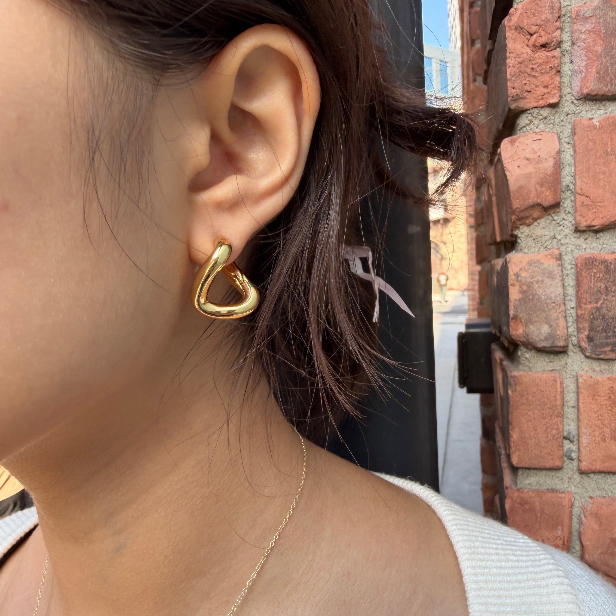 18k gold plated Earrings. Elegant and modern, the Bella Huggies Earrings are designed to sit comfortably close to the ear with a refined, sculptural look. Featuring a softly twisted oval...