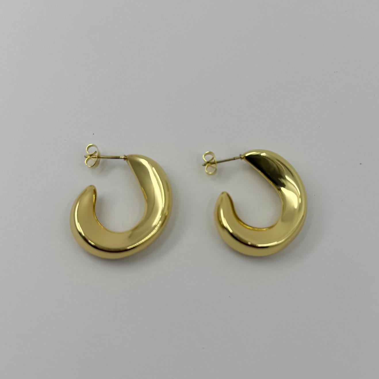 18k gold plated Modern crescent-shaped hoop earrings with a bold, sculpted silhouette.