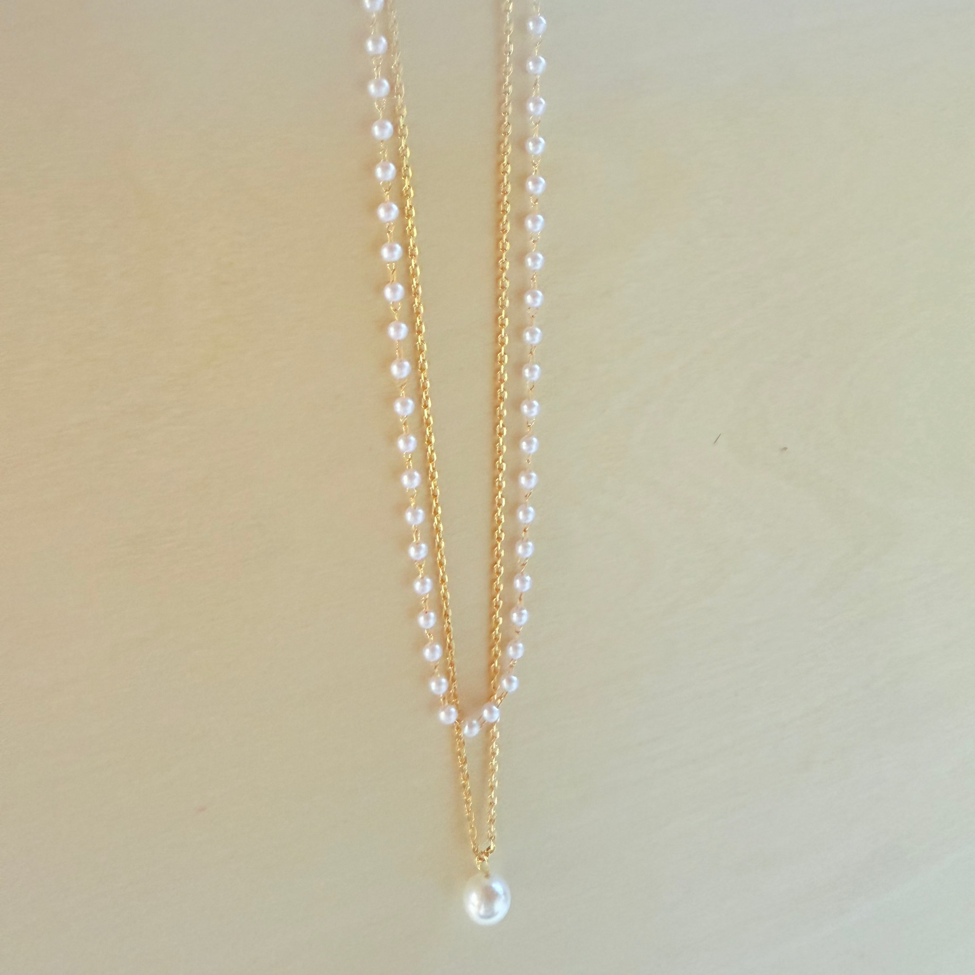 Una pieza delicada y sofisticada, el Collar Capas de Perlas Luna cuenta con dos cadenas unidas: una adornada con elegantes perlas de imitación y la otra con una delicada cadena de latón bañada en oro de 18 quilates, terminada con un colgante de perla. Las longitudes son de 14” y 16”, con una extensión de 2”, lo que permite ajustarlo perfectamente. Las perlas se ven muy reales, aportando elegancia clásica con un toque moderno. Hipoalergénico e ideal para ocasiones especiales o para un estilo refinado diario.