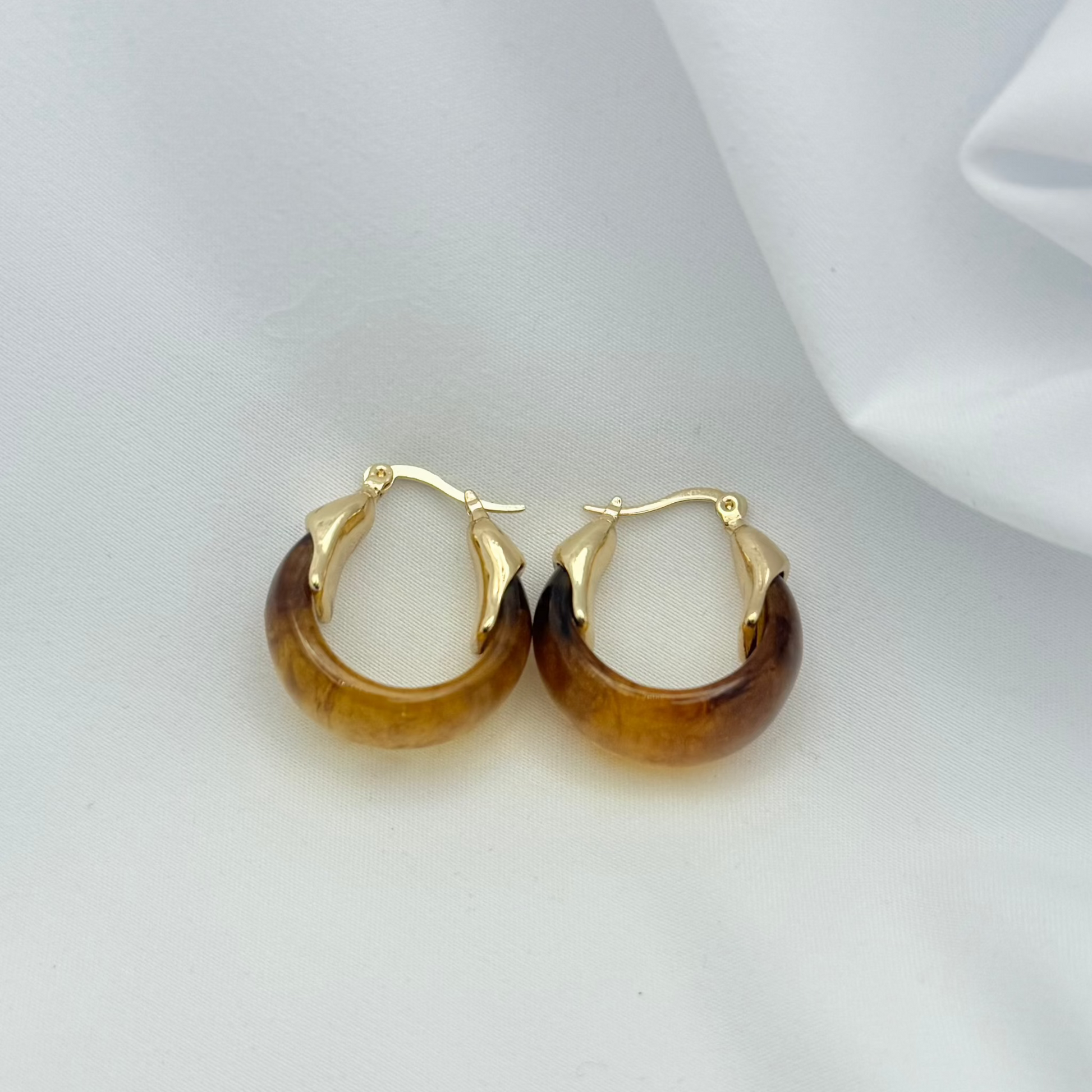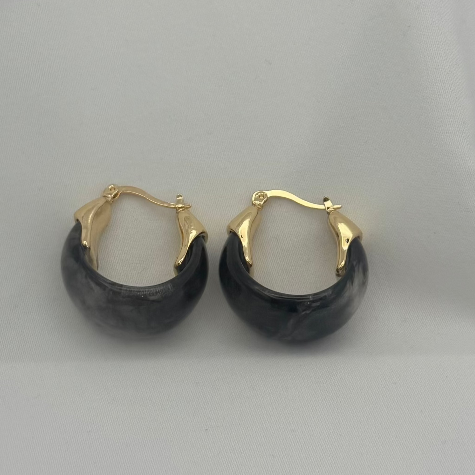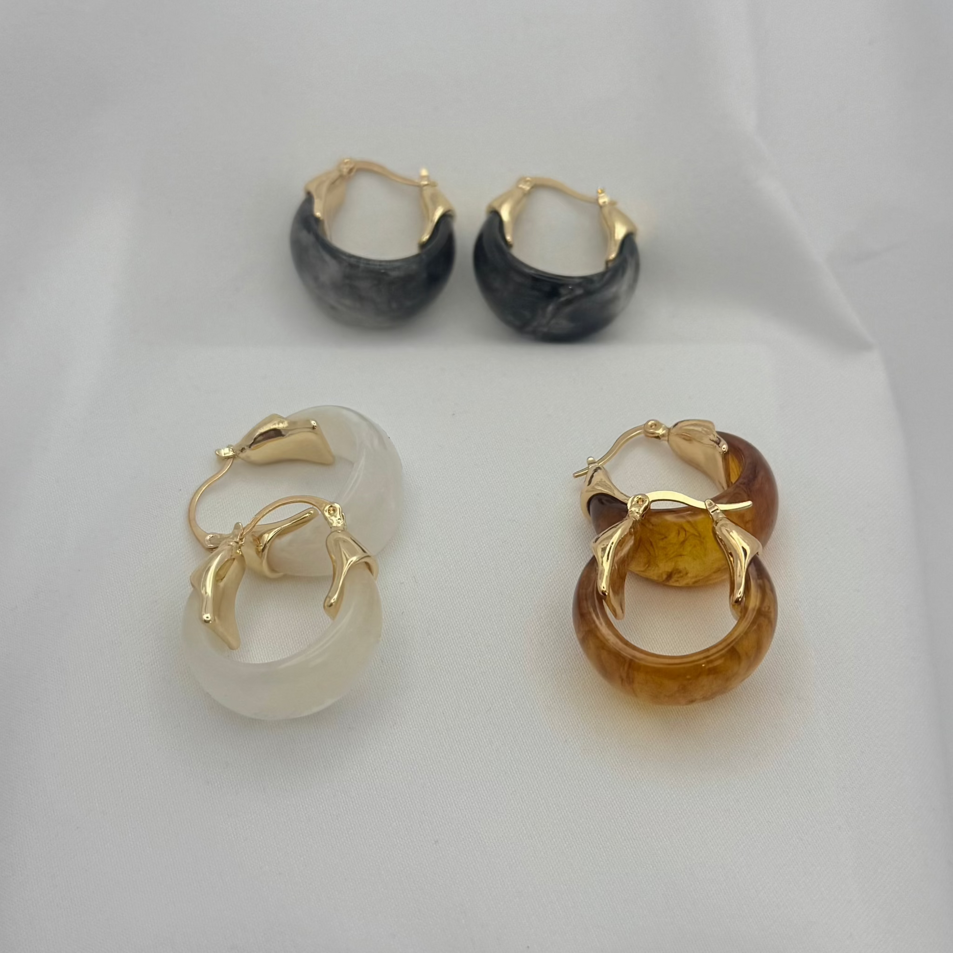 Add a pop of color to your style with our Luna Resin Hoops. These 35mm statement earrings feature bold, chunky resin design in three elegant shades-classic black, crystal white, and amber brown. Each pair is finished with 18k gold-plated, hypoallergenic hardware for touch of luxury and all-day comfort. Lightweight and chic, perfect for everyday glam or night out.