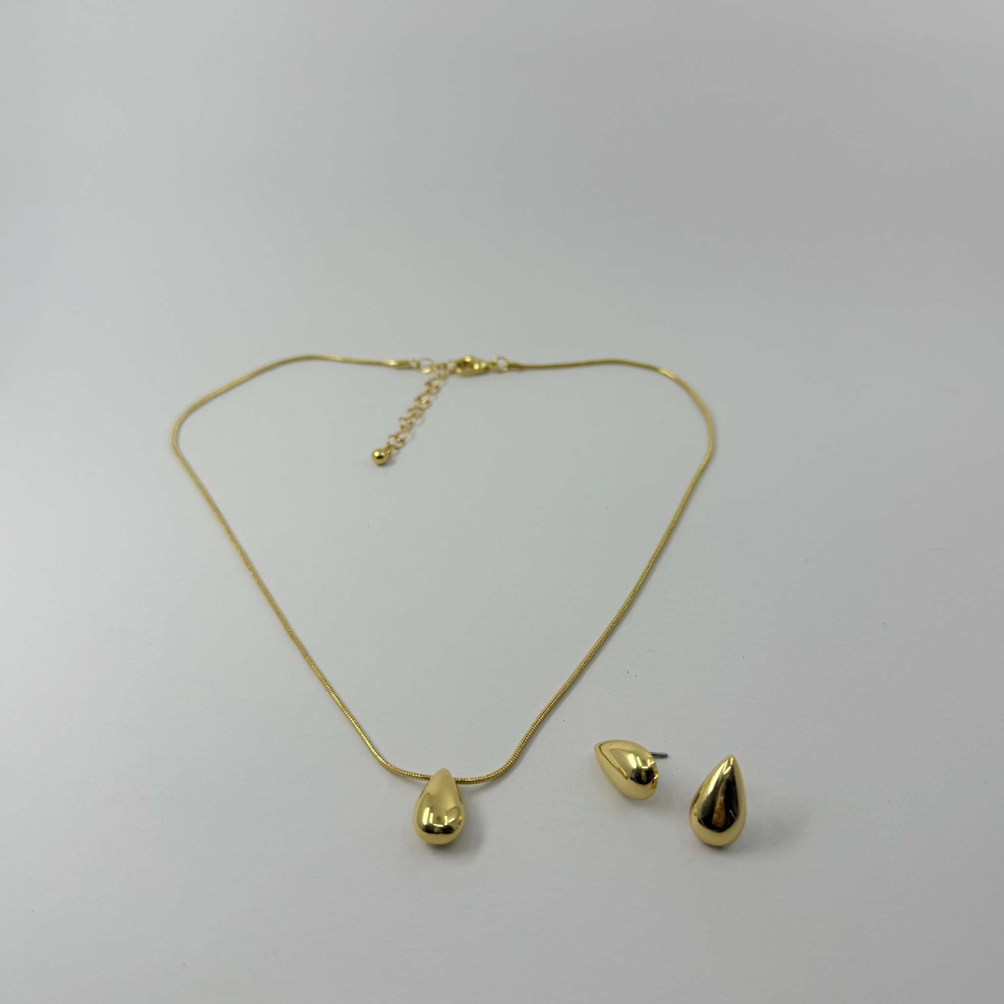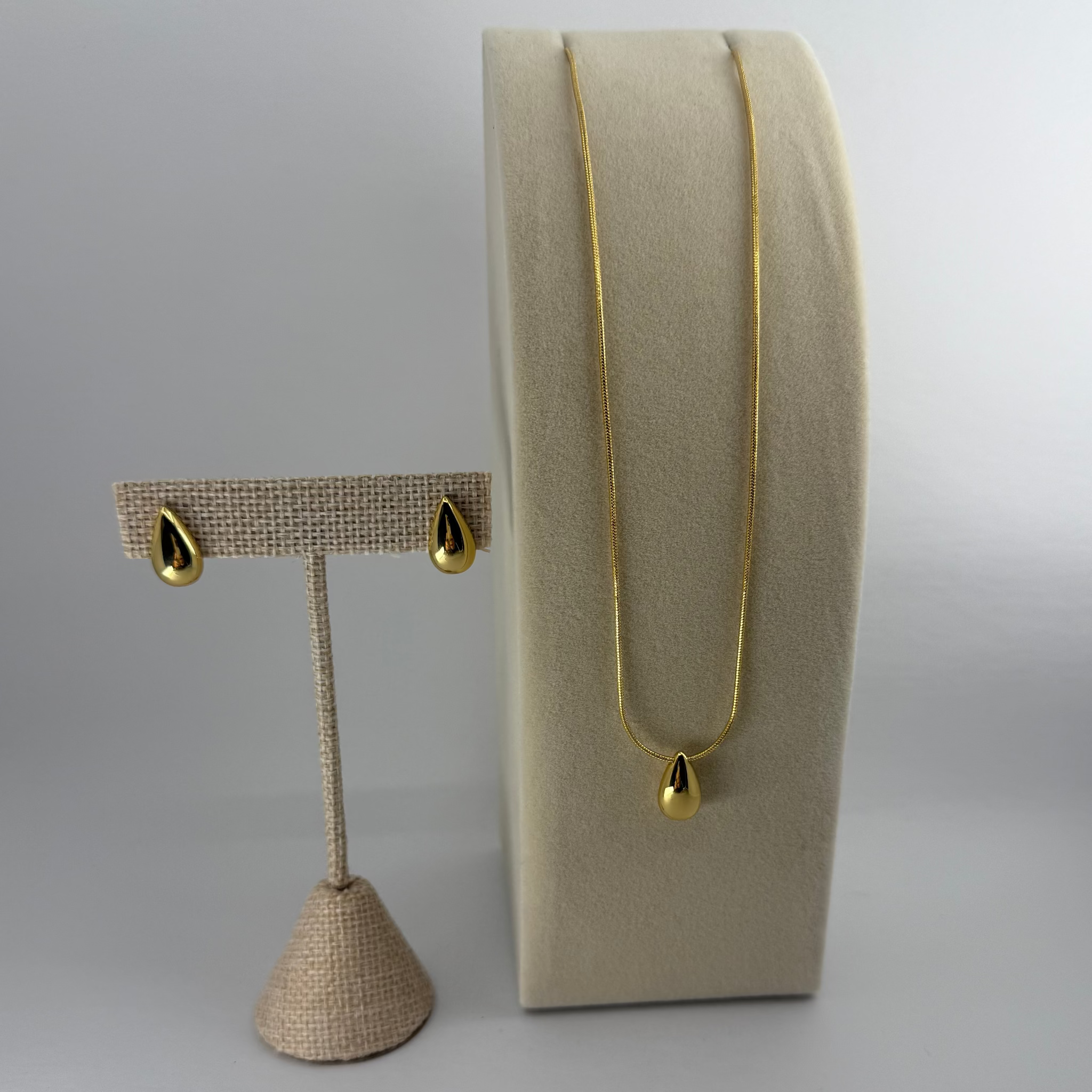 Minimal teardrop pendant necklace and earrings Set featuring a smooth snake chain. 18K gold plated over...
